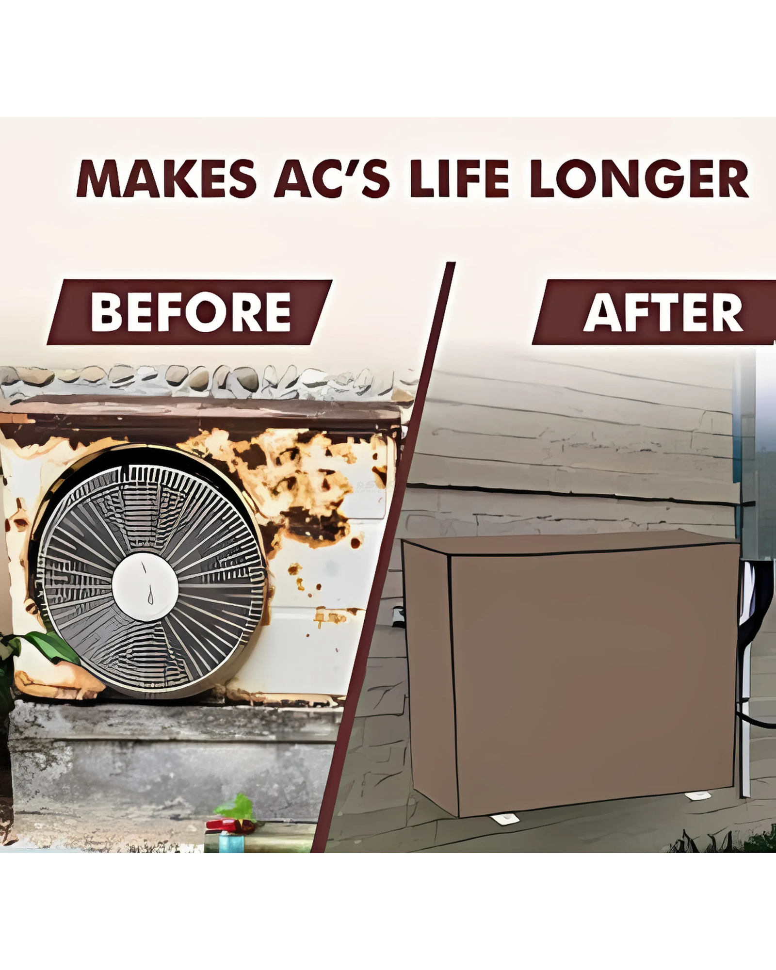 Air conditioner cover provides all season protection for your air conditioner Covers air conditioner year round when not in use. It keeps out water, dust and elements and resists bad weather Protects your investment and keeps your air conditioner looking new.